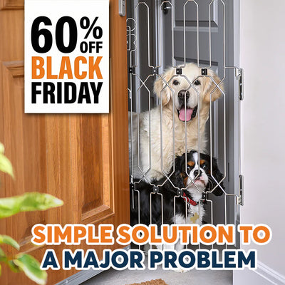 Dog Safety Gate Plus – Extra Strong, No-Drill Pet Gate for Stairways, Doorways & Hallways | Easy One-Hand Use, No Wall Damage
